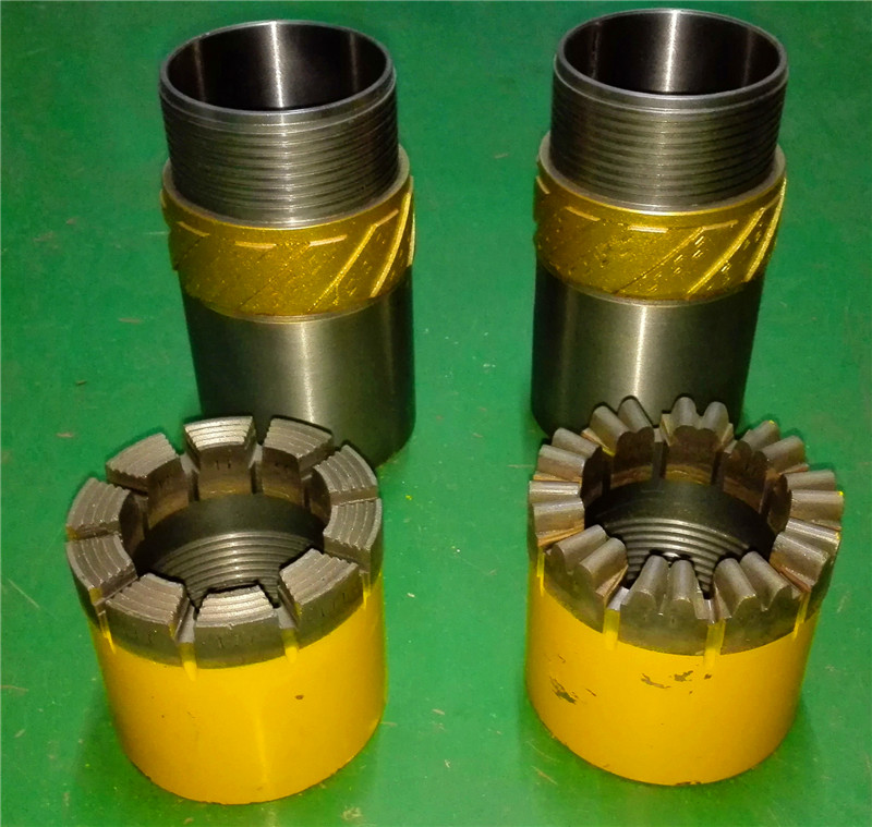 取芯鉆桿鉆具是一種不提鉆而從鉆桿內(nèi)撈取巖芯的鉆井工具。它具有鉆進(jìn)效率高,巖心采取率高,鉆頭壽命長(zhǎng),勞動(dòng)強(qiáng)度小等優(yōu)點(diǎn)。隨著鉆孔深度的加深,其優(yōu)勢(shì)更為明顯。整套鉆具包括鉆具總成、鉆桿、加厚鉆桿、提引器、打撈器、夾持器、電動(dòng)或柴油機(jī)驅(qū)動(dòng)繩索絞車和金剛石自由鉗等部件。