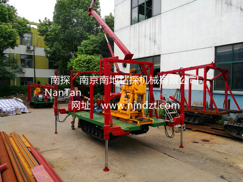 該履帶底盤承載重量達4T,可以裝載各種小型鉆機,如:XY-1-1、XY-1、XY-1A、XY-1A(YJ)、XY-1A-4、XY-1A-5、XY-1B、XY-1B-1、XY-1B-2、XY-200、XY-200(YJ)、XY-200B、XY-200B-1、XY-200B-2、GXY-1系列、GXY-2Q、GXY-200B、GYQ-200、GYQ-200A、GK180、GXY-2K、GXY-2C等100-300米鉆機,并可同時載BW160、BW160A、BW200或BW200A型泥漿泵,具有伸縮式液壓起落鉆塔、行走方便、上下汽車安全等特點,廣泛適用于公路、鐵路、水電、橋梁、壩基等的工程地質勘察、地質巖芯鉆探、物理勘察、小型灌漿孔、爆破孔、水井孔和空調孔的鉆進。